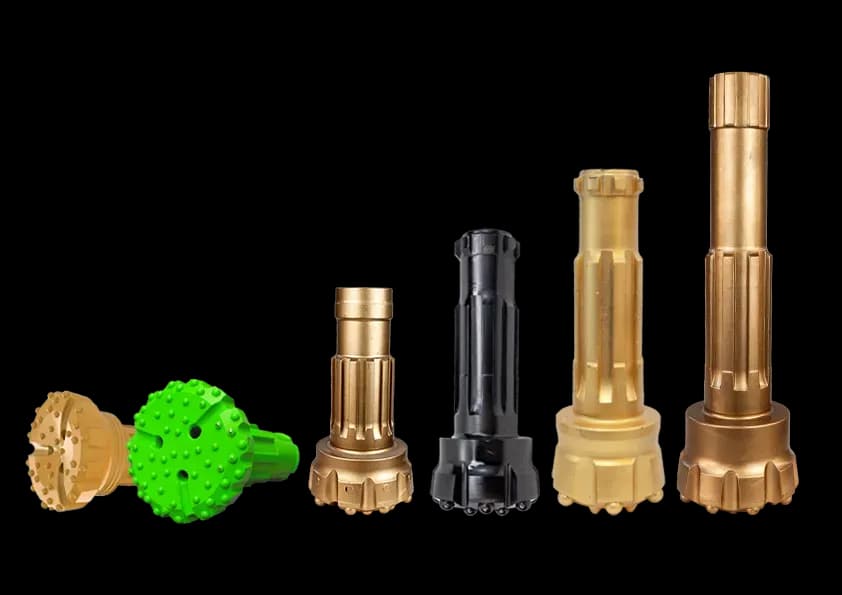 Key Features: Tungsten carbide inserts (HRC 55-60, wear-resistant); customizable insert/end-face designs; standard DTH interfaces (lossless energy transfer).